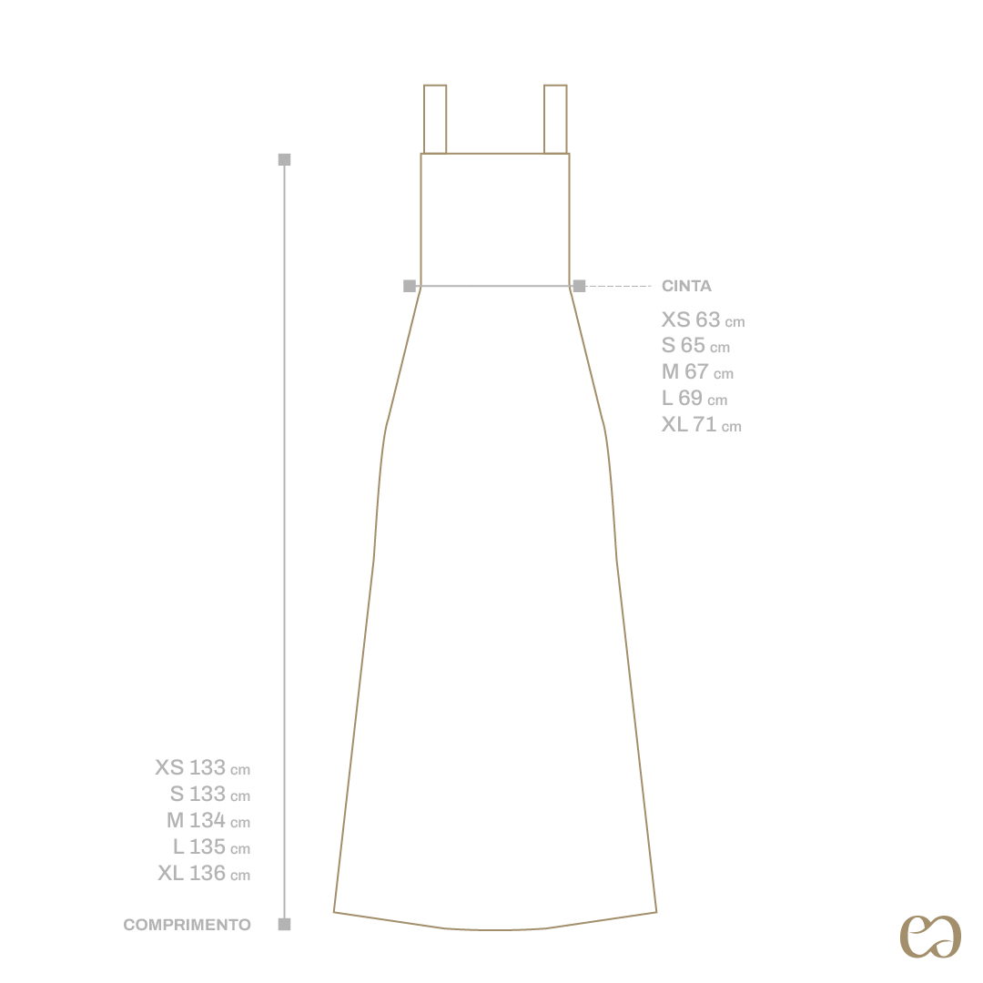 A Joana está a usar o tamanho S e mede 1,63m. O vestido veste largo, para aderir melhor ao corpo aconselhamos a adquirir o tamanho abaixo e a consultar o size guide.